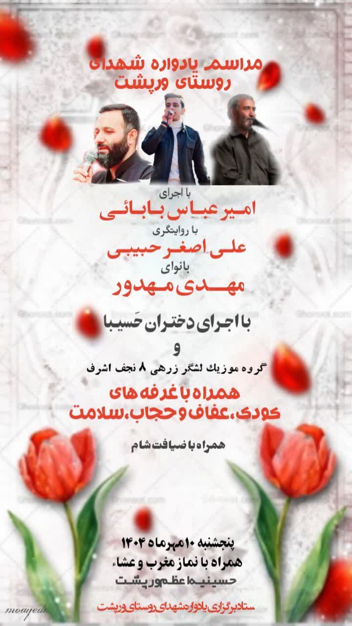 به گزارش رسانه مردمی ورپشت، پنجمین یادواره شهدای والامقام روستای ورپشت شامگاه پنجشنبه ۱۰ مهرماه ۱۴۰۴ در حسینیه اعظم روستا، با حضور پرشور خانوادههای معظم شهدا، پیشکسوتان جهاد و دفاع، جوانان، نوجوانان و جمعی از اهالی و علاقهمندان فرهنگ ایثار برگزار شد. این مراسم معنوی که همزمان با اقامه نماز مغرب و عشاء برگزار شد، جلوهای از همبستگی اجتماعی، ایمان، معرفت و احترام عمیق مردم روستا به مقام شامخ شهیدان بود؛ شهیدانی که آرامش امروز کشور مرهون رشادتهای آنان است.
