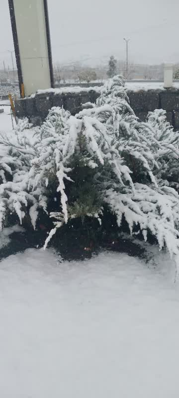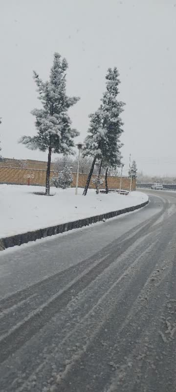 در یکی از این قابهای تماشایی، دو سروِ استوار را میبینیم که گویی قامت بستهاند به نمازِ شکر و بر شانههای سبزشان، عبایی از برفِ سپید انداختهاند؛ در حالی که جادهای آرام با ردِ چرخهای اتومبیل، زندگی و جریانِ حیات را در دلِ این سکوتِ برفی فریاد میزند.