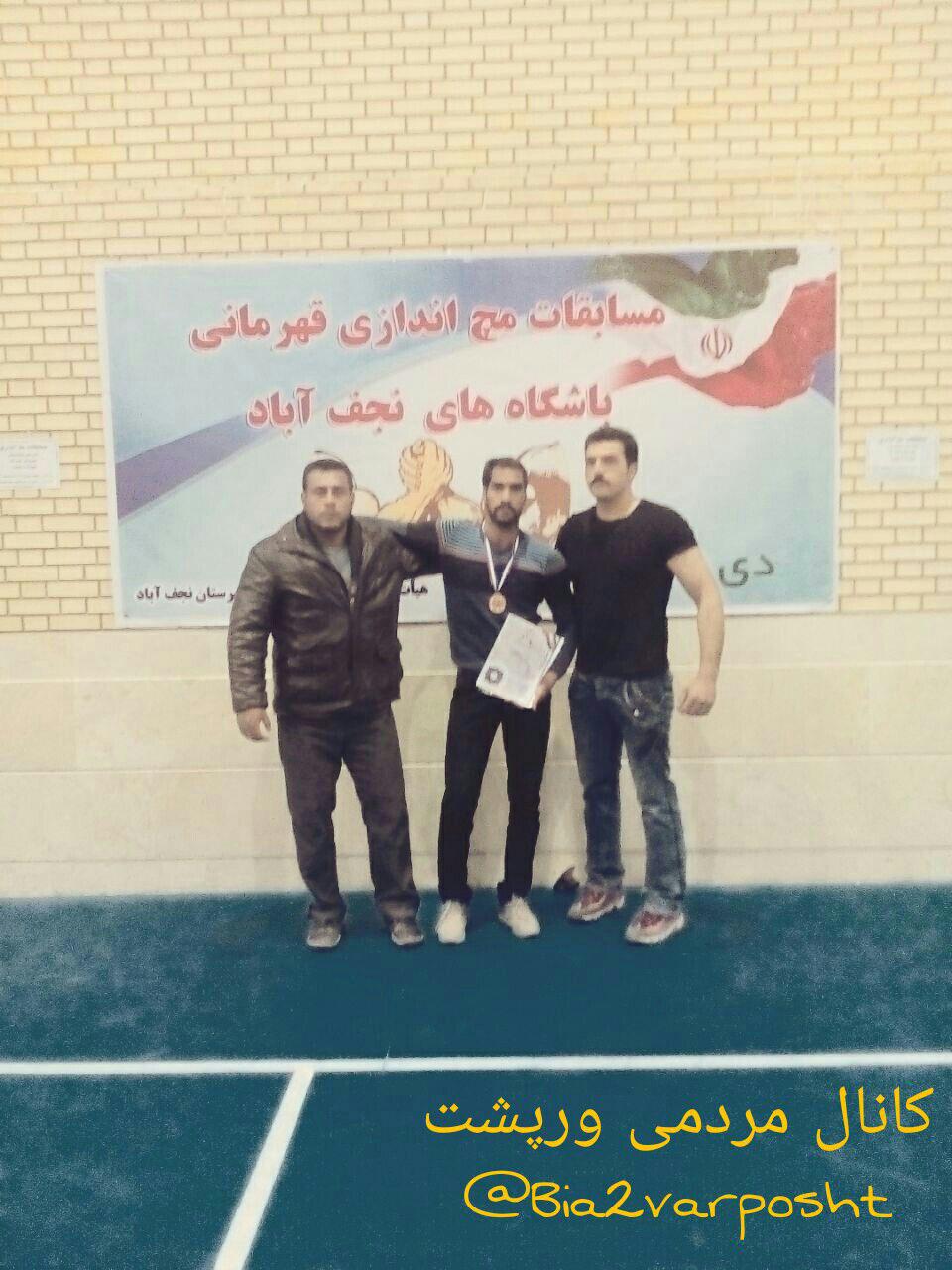 26 - دی - 1395افتخاری دیگر: کسب مقام سوم در مسابقات مچ اندازی قهرمانی باشگاه های نجف آباد کسب مقام سوم در مسابقات مچ اندازی قهرمانی باشگاه های نجف آبادوراهیابی به مسابقات استان توسط علی خدایی رابه خانواده محترمشان ومردم شریف روستای ورپشت تبریک عرض می نماییم. به کانال مردمی ورپشت بپیوندید👇 @Bia2varposht سایت مردمی ورپشت Www.varposht.ir